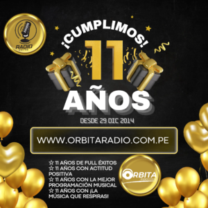 Orbita Radio está de aniversario, cumple 11 años ininterrumpidos en el aire, 11 años de éxitos.Orbita es una Radio Online que se mantiene en el tiempo gracias al apoyo de una gran audiencia (Según las métricas.)